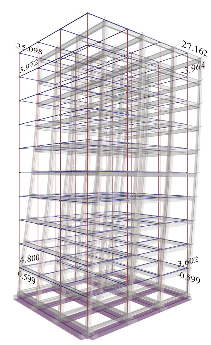Εικόνα 5.4.7.2-3: Ο πραγματικός σκελετός του κτιρίου με το wireframe προσομοίωμα Εικόνα 5.4.7.2-3: Ο πραγματικός σκελετός του κτιρίου με το wireframe προσομοίωμα